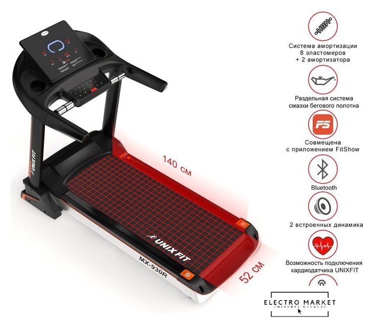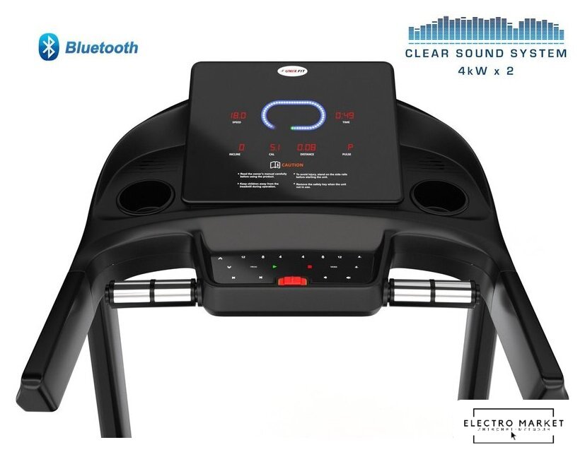 электрическая беговая дорожка, автоматическая регулировка угла наклона, полотно: 54×150 см, скорость движения: 1–24 км/ч, 80 программ тренировок