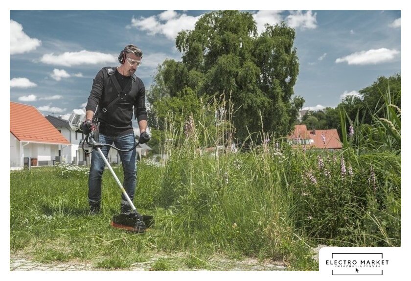 аккумуляторный, оснастка: леска+металлический нож, ширина скашивания: 25.5-38 см, 18 В, аккумулятор в комплекте, 4.6 кг