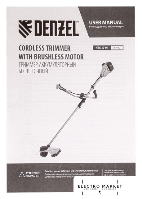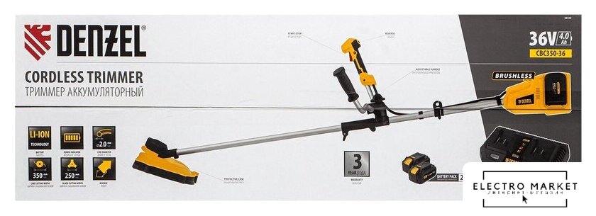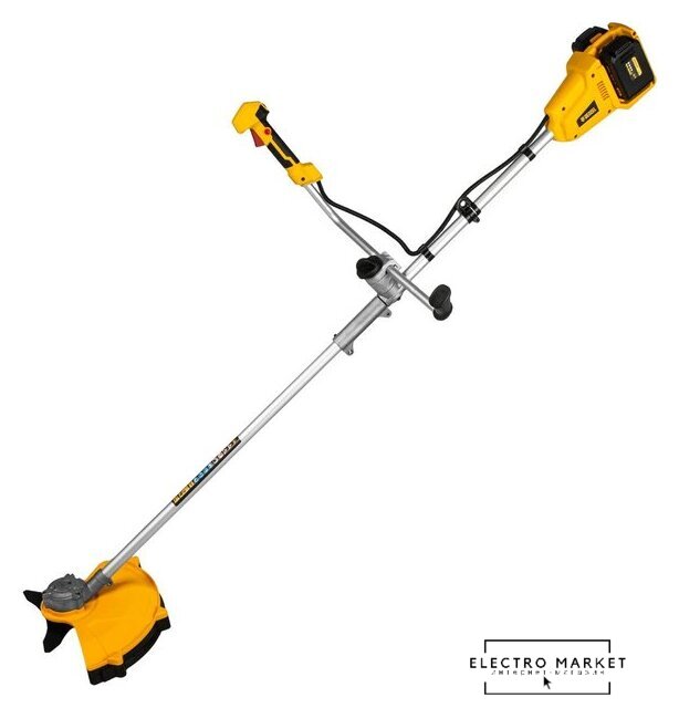 | Комплектация | 1. Триммер – 1 шт.2. Штанга – 1 шт.3. Комплект крепежа – 1 шт.4. Кожух защитный – 1 шт.5. Рукоятка – 1 шт.6. Катушка триммерная – 1 шт.7. Нож трехлопастной – 1 шт.8. Ремень плечевой – 1 шт.9. Аккумуляторная батарея LI-ion 18 В, 4 Ач – 2 шт.10. Зарядное устройство на 2 аккумуляторные батареи – 1 шт. |