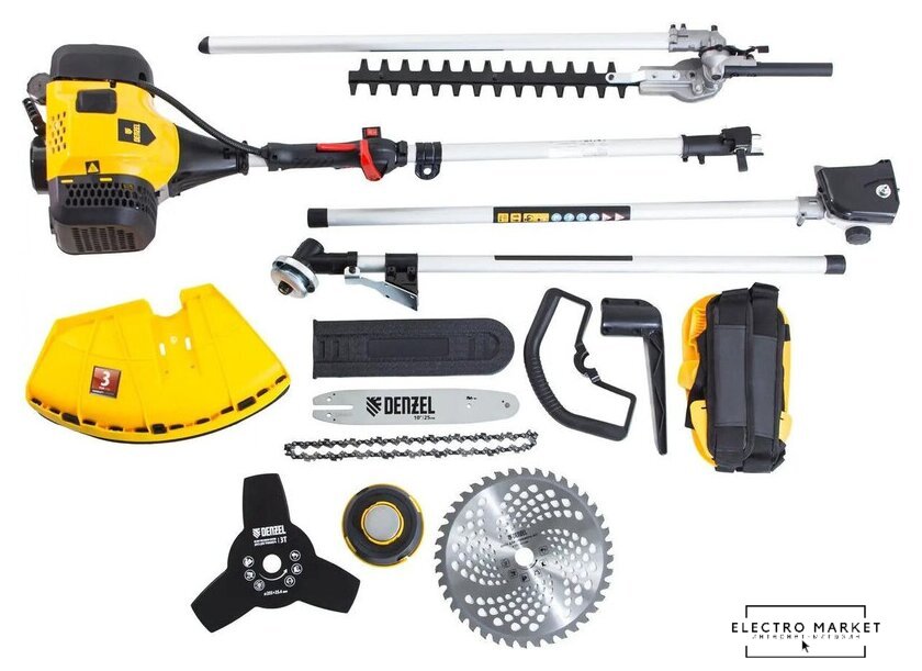 бензиновый, двухтактный, 2460 Вт, оснастка: леска+металлический нож+металлический диск, 7 кг