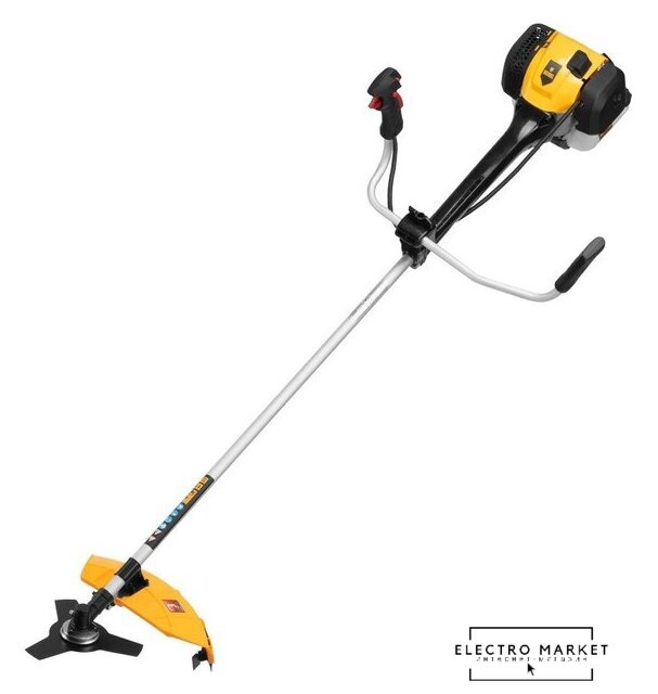 бензиновый, двухтактный, 850 Вт, оснастка: леска+металлический нож+металлический диск, ширина скашивания: 44 см, 6.5 кг