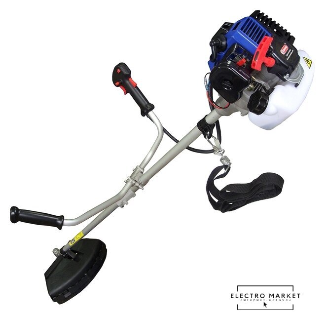 бензиновый, оснастка: леска+металлический нож+металлический диск, ширина скашивания 25.5 см, вес 7.7 кг