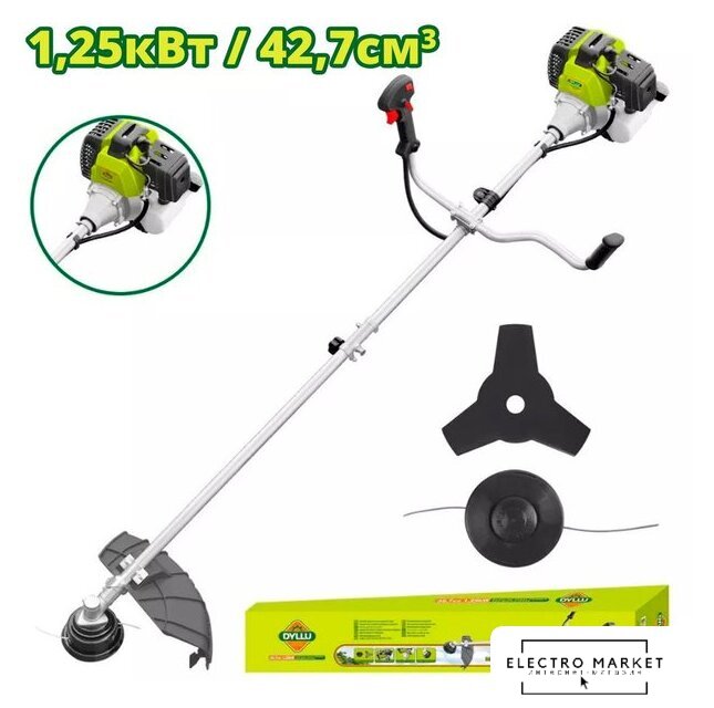 бензиновый, двухтактный, 1600 Вт, оснастка: леска+металлический диск, ширина скашивания: 25.5-44 см, легкий пуск, 7.8 кг