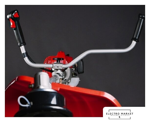 Аксессуары | -моторный блок- штанга- полуавтоматическая шпуля с леской (посадка М10х1,25 мм)- стальной триммерный трехлопастный нож- ремень наплечный- рукоятка велосипедного типа- защитный кожух- набор инструментов- канистра для бензосмеси- очки защитные- инструкция по эксплуатации |
