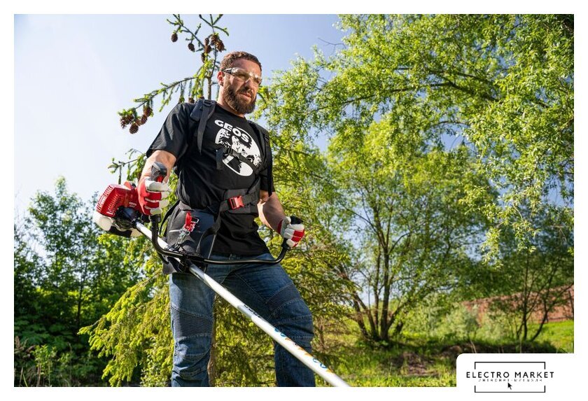 бензиновый, двухтактный, 1750 Вт, оснастка: леска+металлический диск, ширина скашивания: 25.5-44 см, 7.5 кг