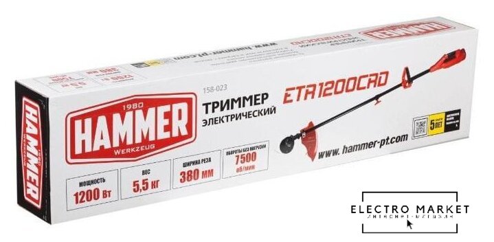 электрический, 1200 Вт, оснастка: леска+металлический нож, ширина скашивания 23-38 см, вес 6 кг