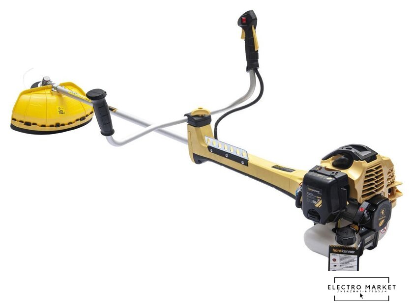 бензиновый, двухтактный, 800 Вт, оснастка: леска+металлический нож, ширина скашивания: 25.5-41.5 см, легкий пуск, 5.2 кг