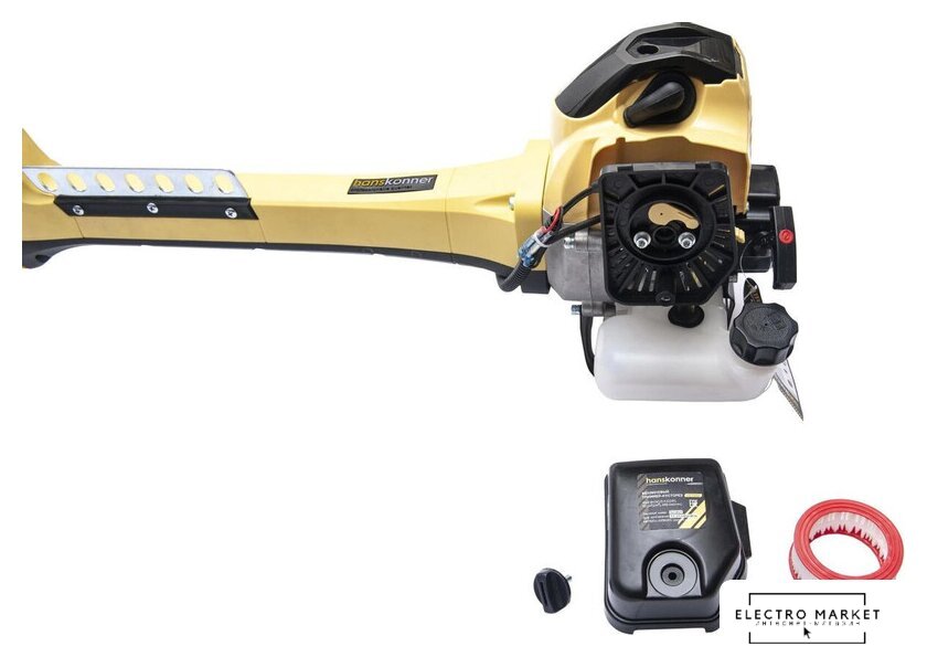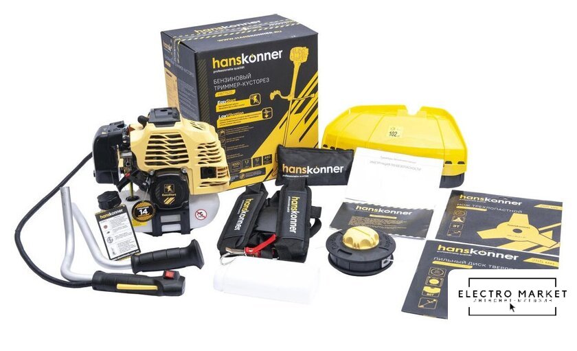 | Комплектация | - Триммер бензиновый (двигатель с ручкой газа и штанга)- Боковая рукоятка- Трехлопастной нож- Катушка с нейлоновой леской- Ранцевый ремень- Канистра для топливной смеси- Защитный кожух с винтами (комплект)- Отвертка с торцевым ключом- Шестигранный ключ (2 шт)- Двухсторонний гаечный ключ- Стяжка- Сумка для инструментов- Режущий диск 80 зубьев- Инструкция по эксплуатации- Инструкция по безопасности |