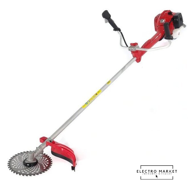 бензиновый, двухтактный, 1500 Вт, оснастка: леска+металлический диск, ширина скашивания: 25.5 см, 7 кг