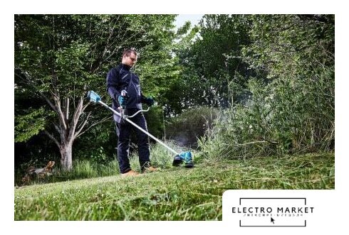 аккумуляторный, оснастка: леска+металлический нож, ширина скашивания 20-30 см, вес 4.7 кг