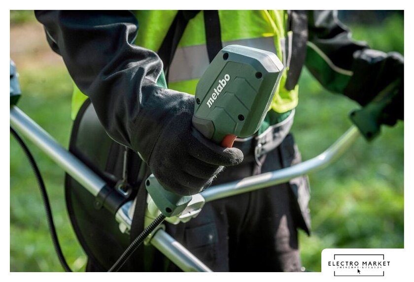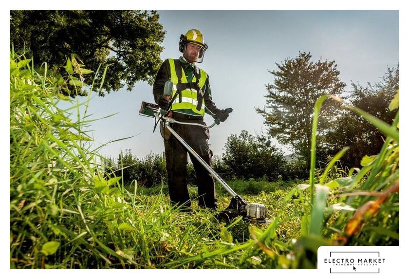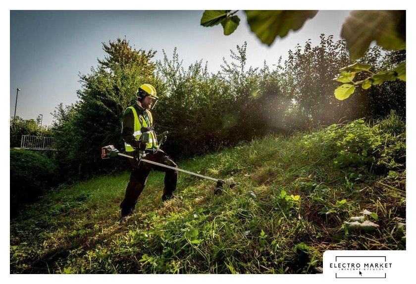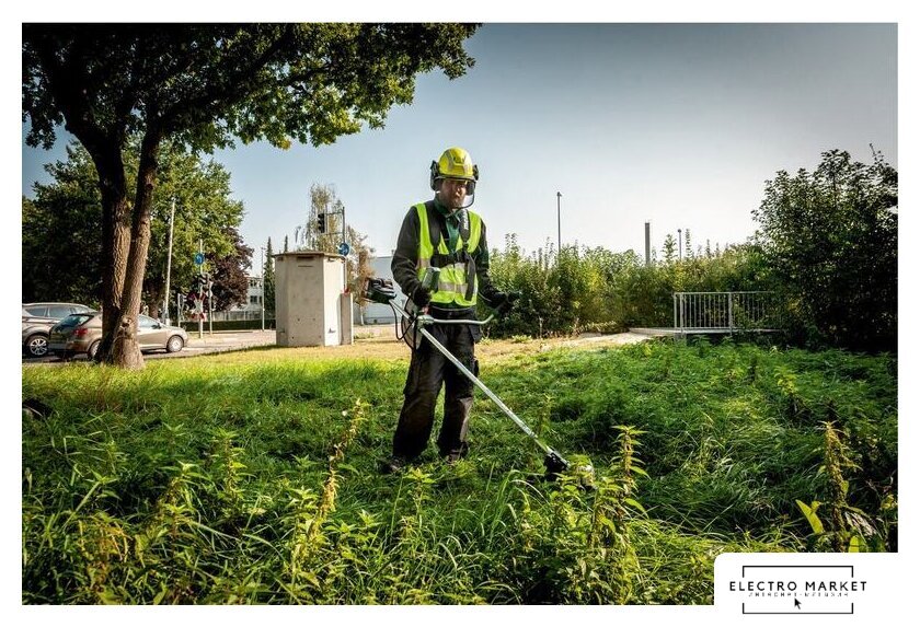 аккумуляторный, оснастка: леска+металлический нож, ширина скашивания 23-35 см, вес 5.3 кг