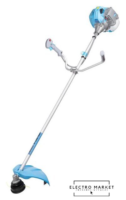 бензиновый, оснастка: леска+металлический нож+металлический диск, ширина скашивания 25.5 см, вес 7.7 кг
