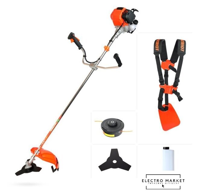 бензиновый, 2500 Вт, оснастка: леска+металлический диск, ширина скашивания 25.5-44 см, вес 9 кг