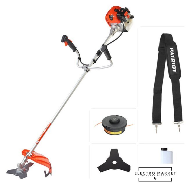 | Аксессуары | - Двигатель в сборе с рукояткой: 1 шт.- Трансмиссионный узел в сборе: 1 шт.- Рукоятка: 1 шт.- Защитный кожух с крепежной планкой: 1 шт.- Набор креплений для сборки: 1 шт.- ЗИП комплект для установки триммерного ножа: 1 шт.- Емкость для приготовления топливной смеси: 1 шт.- Триммерная катушка: 1 шт.- Нож 3-х лопастной- Плечевой ремень: 1 шт.- Инструкция по эксплуатации: 1 шт. |