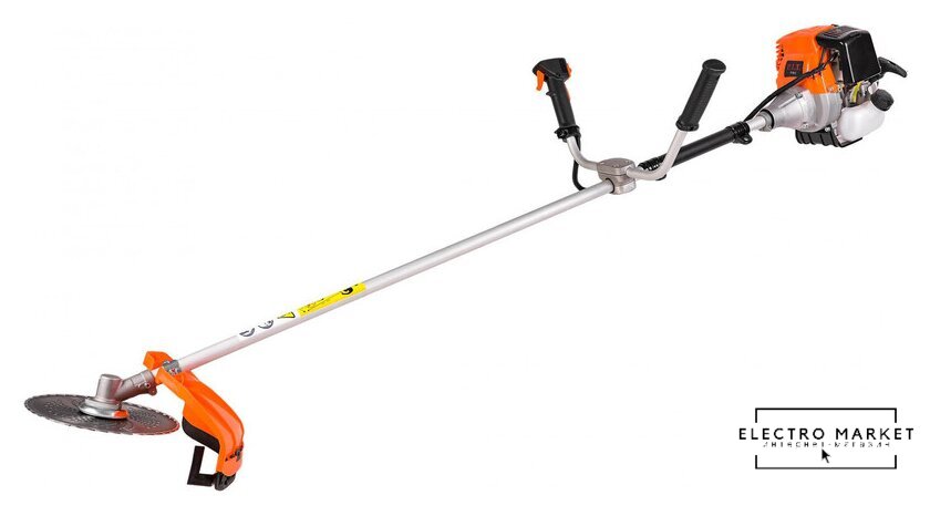 бензиновый, двухтактный, 1500 Вт, оснастка: леска+металлический нож, ширина скашивания: 27.5-48 см, 6.3 кг