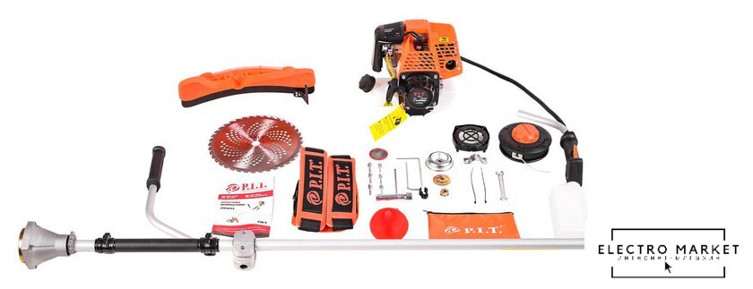 бензиновый, двухтактный, 1000 Вт, оснастка: леска+металлический нож, ширина скашивания: 25.5-44 см, легкий пуск, 5.1 кг