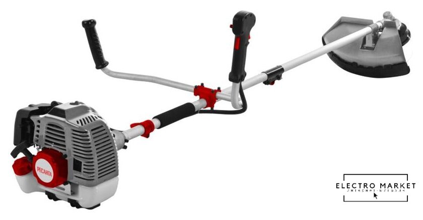 бензиновый, оснастка: леска+металлический нож+металлический диск, ширина скашивания 25.5-42 см, вес 9 кг