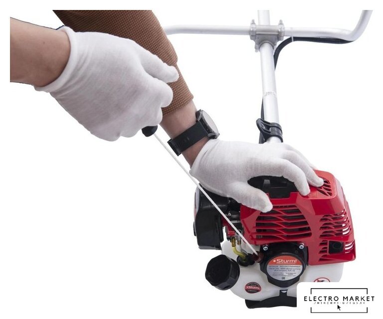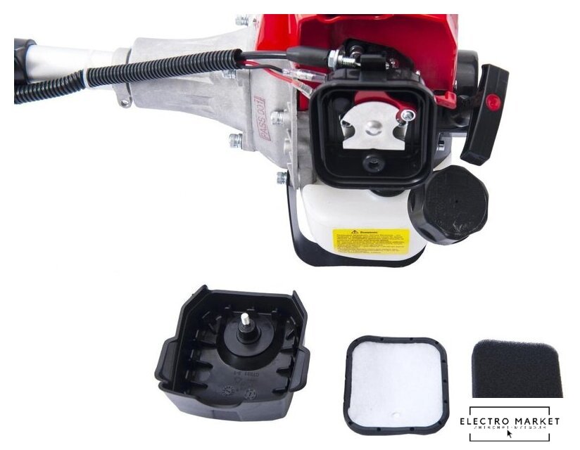 бензиновый, двухтактный, 1250 Вт, оснастка: леска+металлический нож, ширина скашивания: 25.5-43 см, 6.5 кг