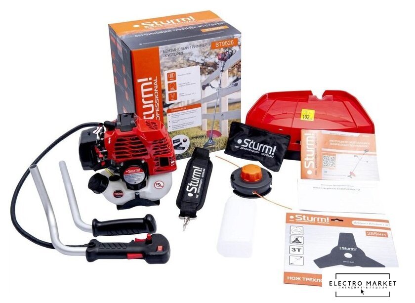 Комплектация | - ранцевый наплечный ремень, - режущий диск 40 зубьев с напайками, - катушка с автоматической заправкой лески, - трехлопастной нож |