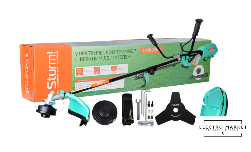 Комплектация | Триммер (двигатель с верхней штангой и коннектором) Штанга нижняя с редуктором Защитный кожух Рукоятка Шпулька с леской Трехлопастной нож Плечевой ремень Винт (2 шт) Шестигранный ключ (2 шт)Комбинированный ключ Дополнительные угольные щетки (комплект, 2 шт) Инструкция по эксплуатации Инструкция по безопасности |