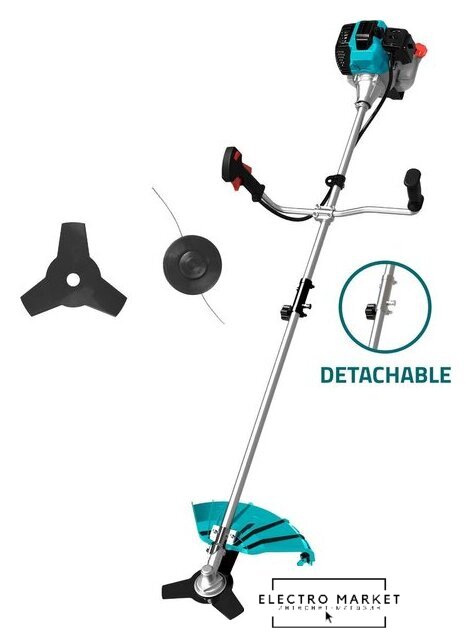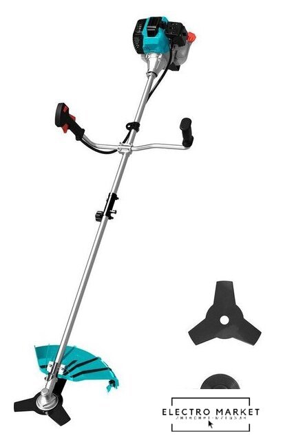 бензиновый, двухтактный, оснастка: леска+металлический диск, ширина скашивания: 25.5-42 см, легкий пуск, 8.1 кг