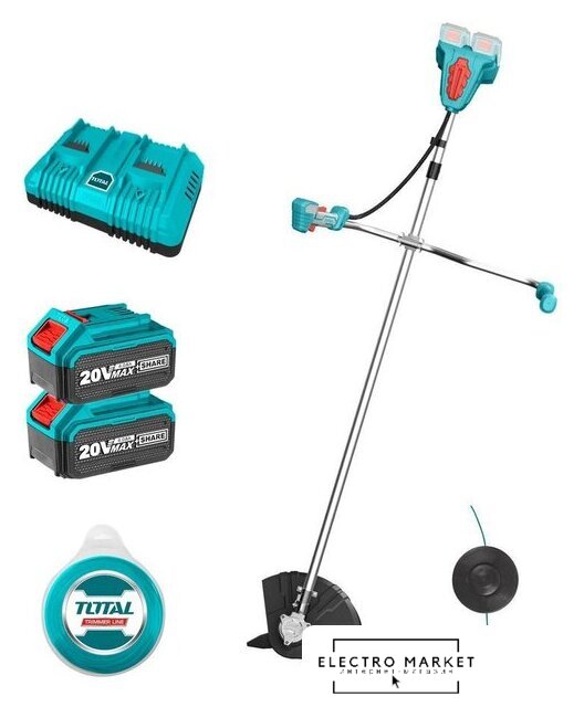 | Комплектация | - Триммер - 1 шт.- Аккумулятор 4,0 А*ч - 2 шт.- Быстрое зарядное устройство на 2 аккумулятора 4А - 1 шт.- Триммерная головка с леской 5 м - 1 шт.- Нож трехлопостной - 1 шт.- Инструкция- Коробка |