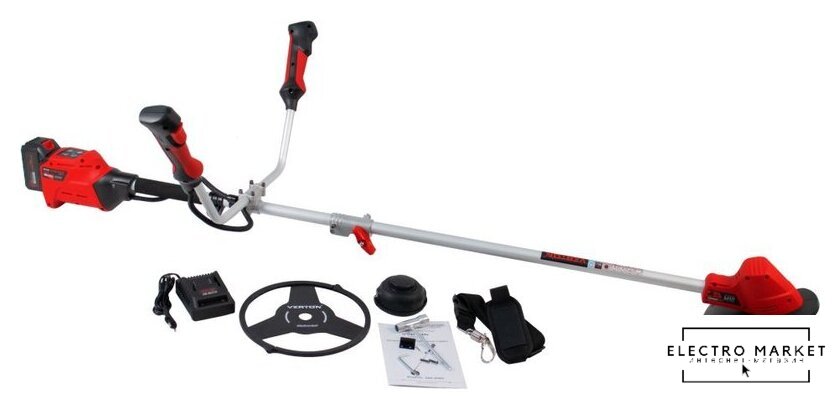Комплектация | • Аккумуляторная батарея 1 шт.• Зарядное устройство 1 шт.• Кожух защитный 1 шт.• Нож 1 шт.• Катушка с леской 1 шт. |