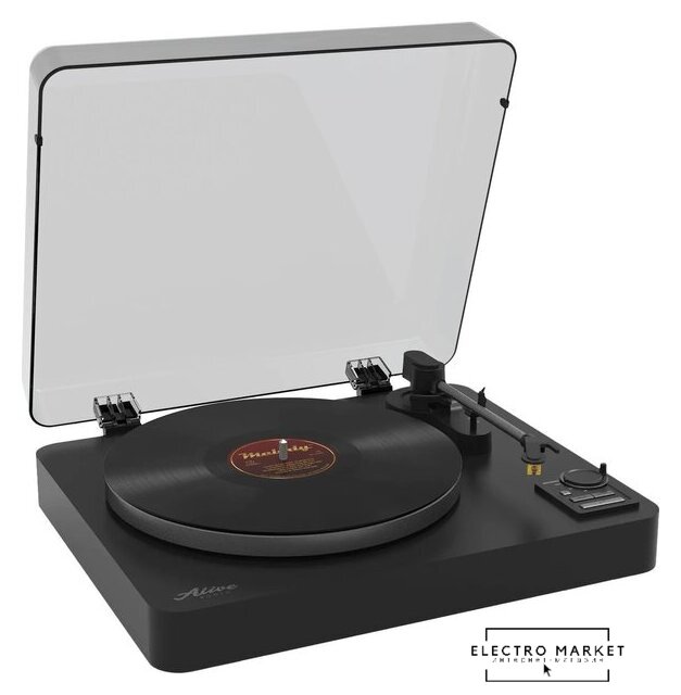 ременной привод, 33 1/3, 45 об/мин, электронное переключение скоростей, встроенный фонокорректор, тонарм поворотный (прямой), картридж с подвижным магнитом (MM), цвет черный