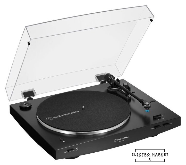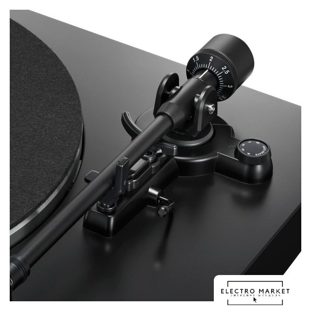 ременной привод, 33 1/3, 45 об/мин, ручное переключение скоростей, встроенный фонокорректор, тонарм поворотный (прямой), картридж с подвижным магнитом (MM), цвет черный