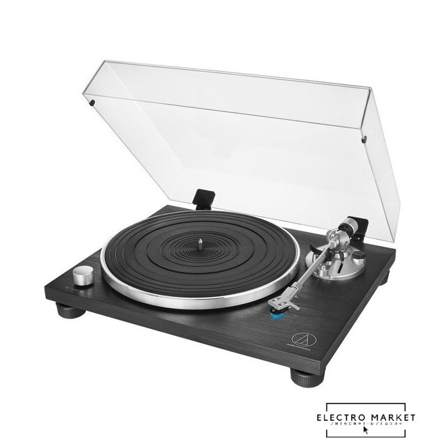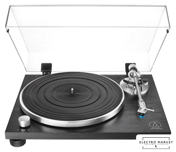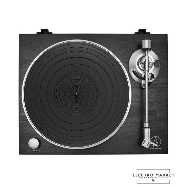 ременной привод, 33 1/3, 45 об/мин, электронное переключение скоростей, встроенный фонокорректор, тонарм поворотный (прямой), картридж с подвижным магнитом (MM), цвет черный