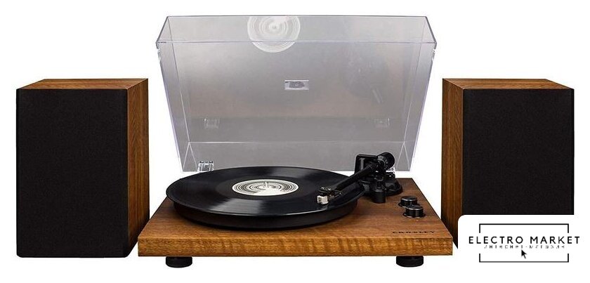 ременной привод, 33 1/3, 45 об/мин, электронное переключение скоростей, встроенный фонокорректор, тонарм поворотный (прямой), картридж с подвижным магнитом (MM), цвет коричневый