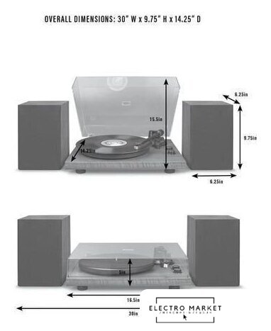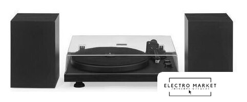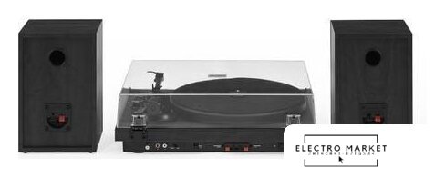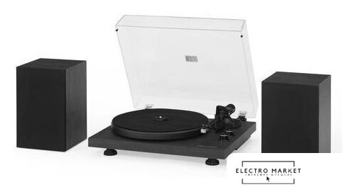 ременной привод, 33 1/3, 45 и 78 об/мин, электронное переключение скоростей, встроенный фонокорректор, тонарм поворотный (прямой), картридж с подвижным магнитом (MM), цвет черный