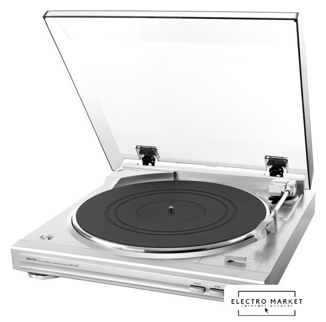 ременной привод, 33 1/3, 45 об/мин, электронное переключение скоростей, встроенный фонокорректор, тонарм поворотный (прямой), картридж с подвижным магнитом (MM), цвет белый/черный