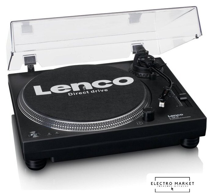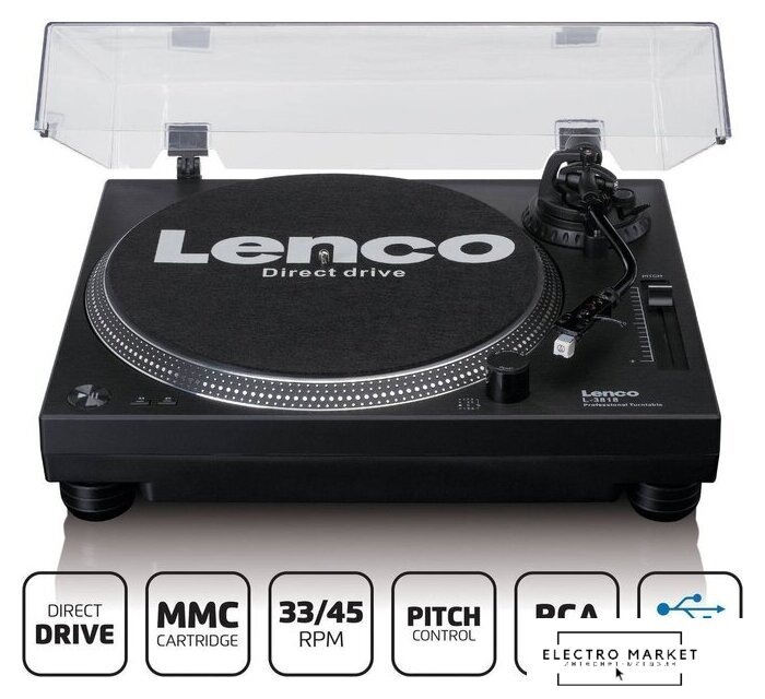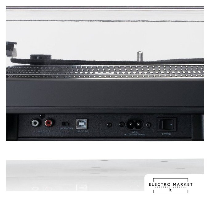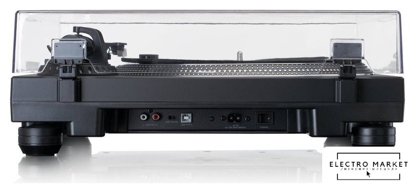 ременной привод, 33 1/3, 45 об/мин, электронное переключение скоростей, встроенный фонокорректор, тонарм поворотный (прямой), картридж с подвижным магнитом (MM), цвет черный