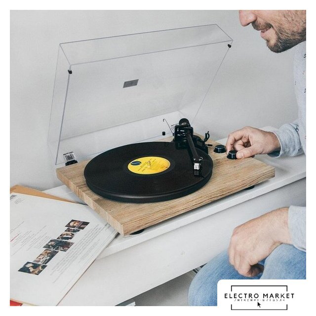 ременной привод, 33 1/3, 45 об/мин, ручное переключение скоростей, встроенный фонокорректор, тонарм поворотный (прямой), картридж с подвижным магнитом (MM), цвет коричневый