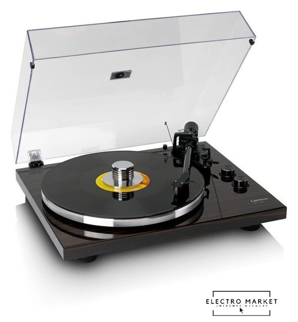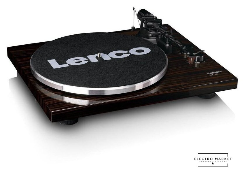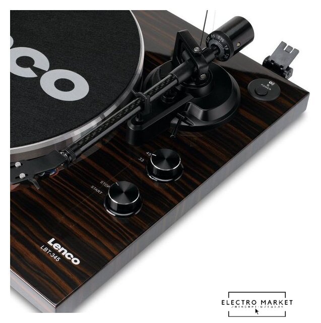 ременной привод, 33 1/3, 45 об/мин, ручное переключение скоростей, встроенный фонокорректор, тонарм поворотный (прямой), картридж с подвижным магнитом (MM), цвет коричневый