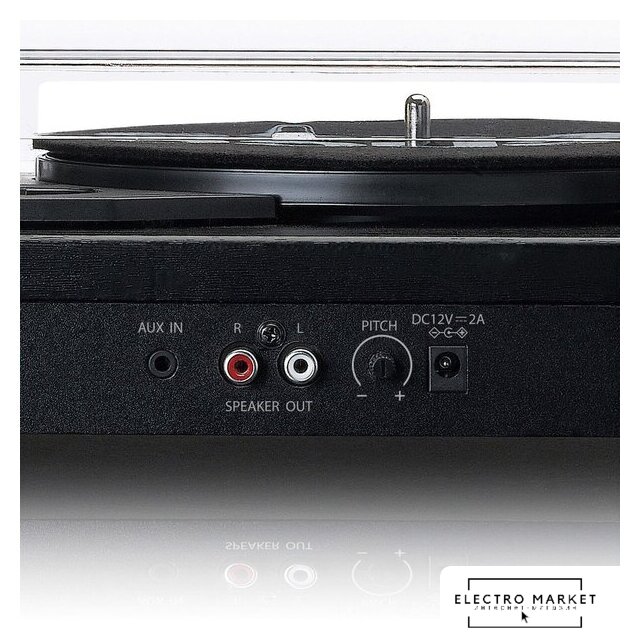 ременной привод, 33 1/3, 45 об/мин, электронное переключение скоростей, встроенный фонокорректор, тонарм поворотный (прямой), картридж с подвижным магнитом (MM), цвет черный