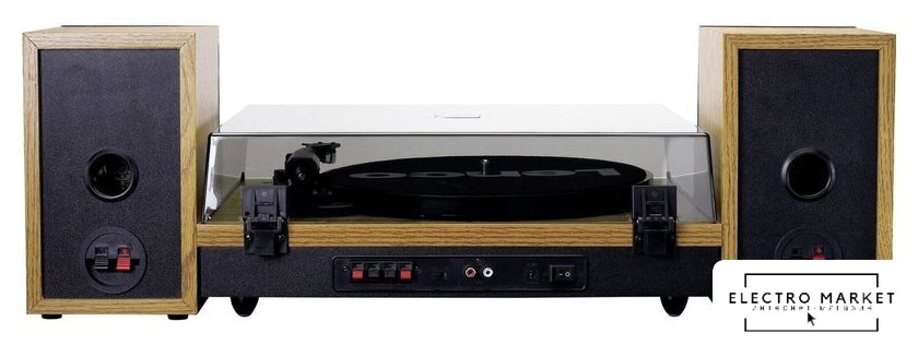 ременной привод, 33 1/3, 45 и 78 об/мин, ручное переключение скоростей, встроенный фонокорректор, тонарм поворотный (прямой), картридж, цвет коричневый