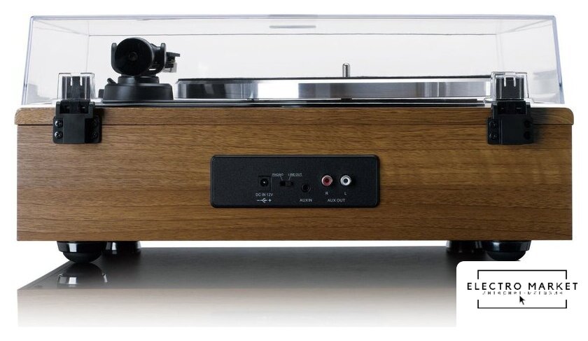 ременной привод, 33 1/3, 45 об/мин, ручное переключение скоростей, встроенный фонокорректор, тонарм поворотный (прямой), картридж с подвижным магнитом (MM), цвет коричневый/серебристый