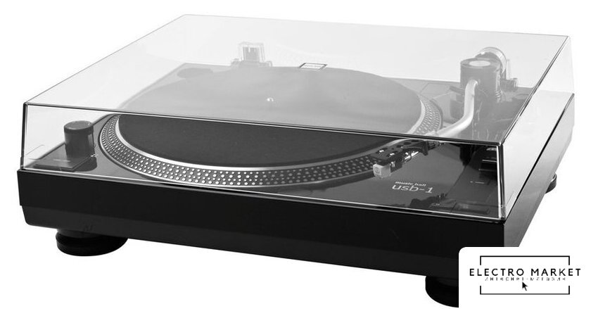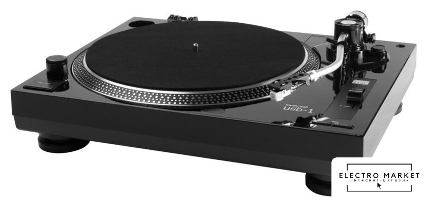 ременной привод, 33 1/3, 45 об/мин, электронное переключение скоростей, встроенный фонокорректор, тонарм поворотный (прямой), картридж с подвижным магнитом (MM), цвет черный