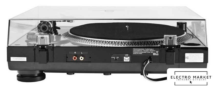 ременной привод, 33 1/3, 45 об/мин, ручное переключение скоростей, встроенный фонокорректор, тонарм поворотный (прямой), картридж с подвижным магнитом (MM), цвет черный