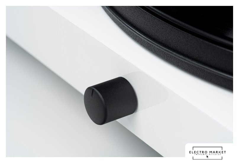 ременной привод, 33 1/3, 45 об/мин, ручное переключение скоростей, тонарм поворотный (прямой), картридж с подвижным магнитом (MM), цвет белый