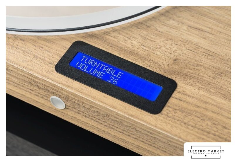 ременной привод, 33 1/3, 45 и 78 об/мин, электронное переключение скоростей, тонарм поворотный (прямой), картридж с подвижным магнитом (MM), цвет белый