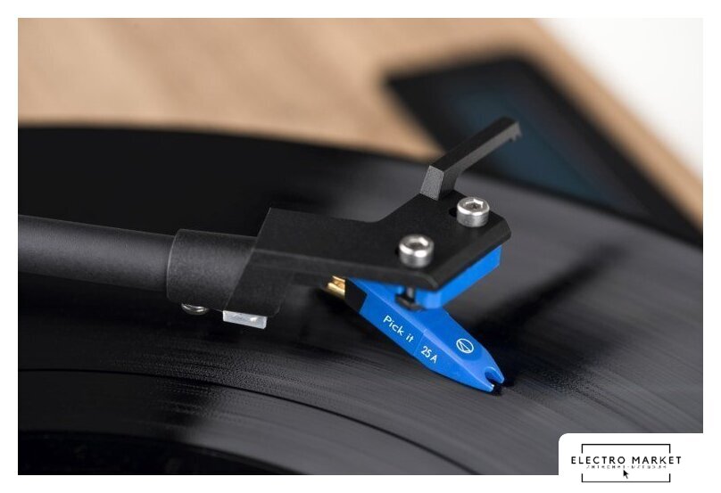 ременной привод, 33 1/3, 45 об/мин, электронное переключение скоростей, тонарм поворотный (прямой), картридж с подвижным магнитом (MM), цвет черный