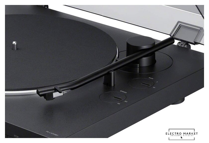 прямой привод, 33 1/3, 45 об/мин, электронное переключение скоростей, встроенный фонокорректор, тонарм поворотный (изогнутый), картридж с подвижным магнитом (MM), цвет белый