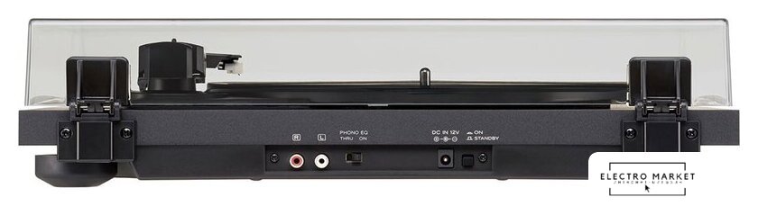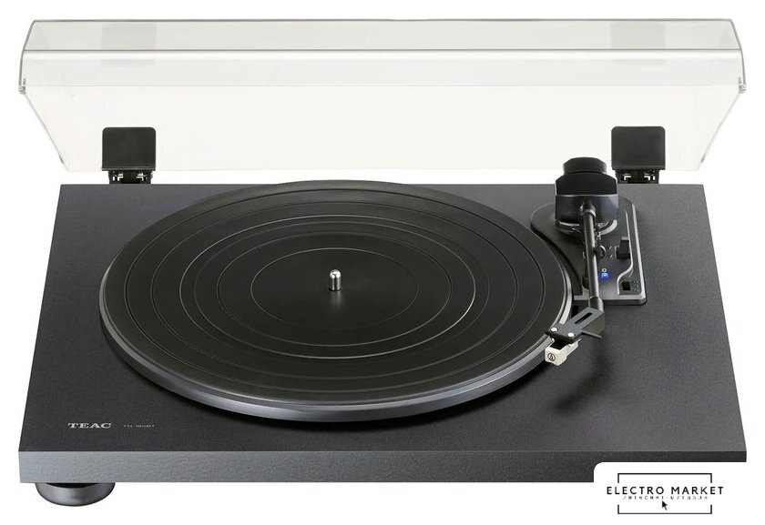 ременной привод, 33 1/3, 45 и 78 об/мин, электронное переключение скоростей, встроенный фонокорректор, тонарм поворотный (прямой), картридж с подвижным магнитом (MM), цвет черный