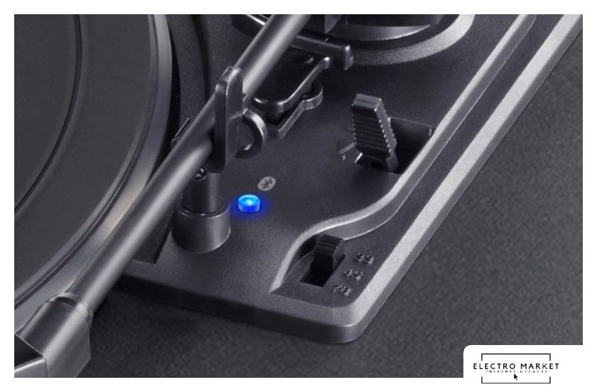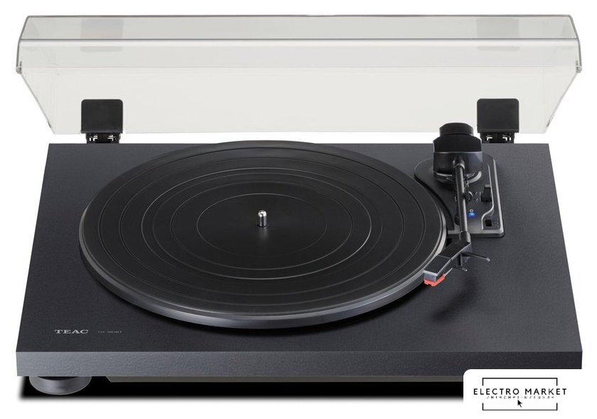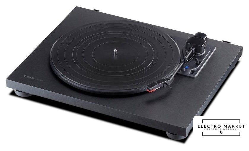 ременной привод, 33 1/3, 45 и 78 об/мин, электронное переключение скоростей, встроенный фонокорректор, тонарм поворотный (прямой), картридж с подвижным магнитом (MM), цвет черный
