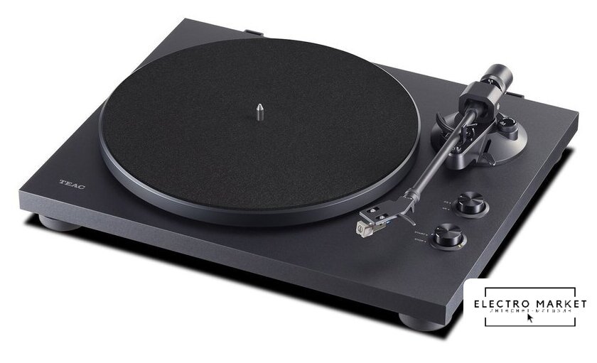 ременной привод, 33 1/3, 45 об/мин, электронное переключение скоростей, встроенный фонокорректор, тонарм поворотный (прямой), картридж с подвижным магнитом (MM), цвет черный