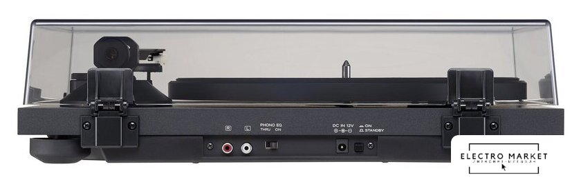 прямой привод, 33 1/3, 45 и 78 об/мин, электронное переключение скоростей, встроенный фонокорректор, тонарм поворотный (изогнутый), картридж с подвижным магнитом (MM), цвет черный