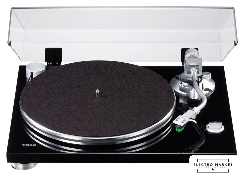 ременной привод, 33 1/3, 45 об/мин, электронное переключение скоростей, встроенный фонокорректор, тонарм поворотный (прямой), картридж с подвижным магнитом (MM), цвет черный